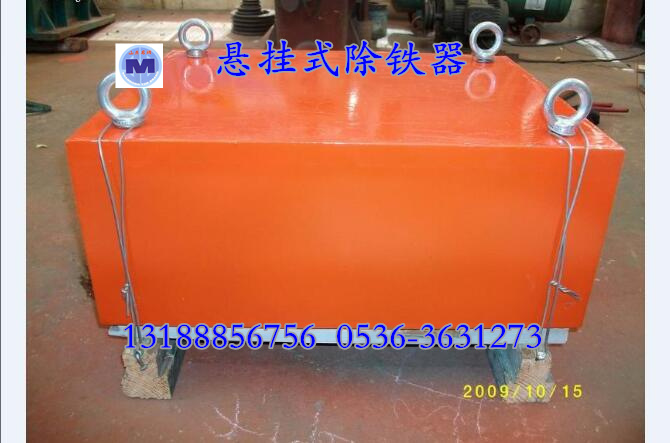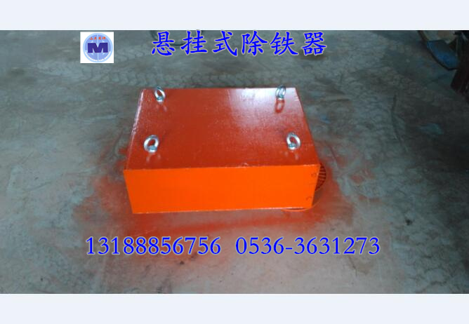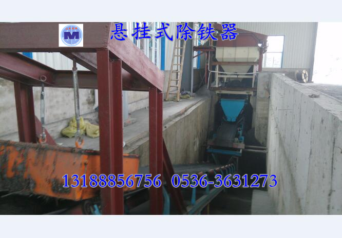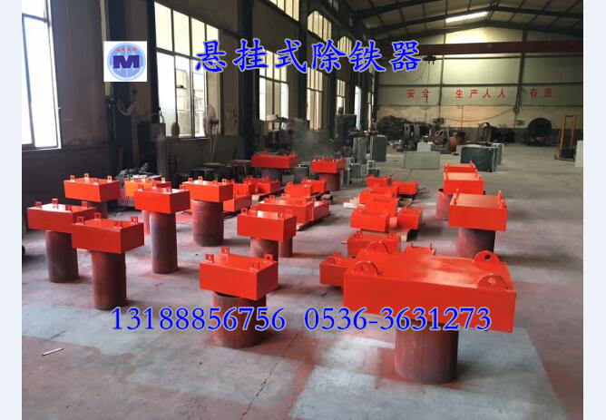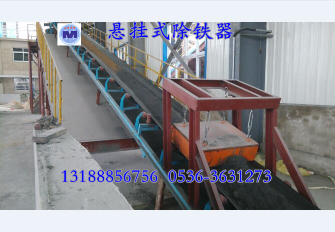 懸挂強磁除鐵器(懸挂式分離器)是一種結構簡單,使用方便,運行可靠,效果良好的磁分離裝置。永磁除鐵器主要應用於各種皮帶運輸機,懸挂在落料處從而達到選鐵目的,用於水泥行業、化工工業用煤、小型礦山、建築材料、木材加工、築造型砂處理以及其它物料中的除鐵,並能夠保證下道工序順利進行。
