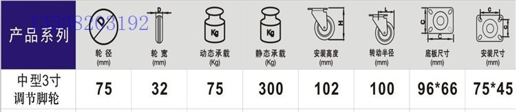 產品名稱:中型2/3/4寸調節腳輪(帶腳杯)