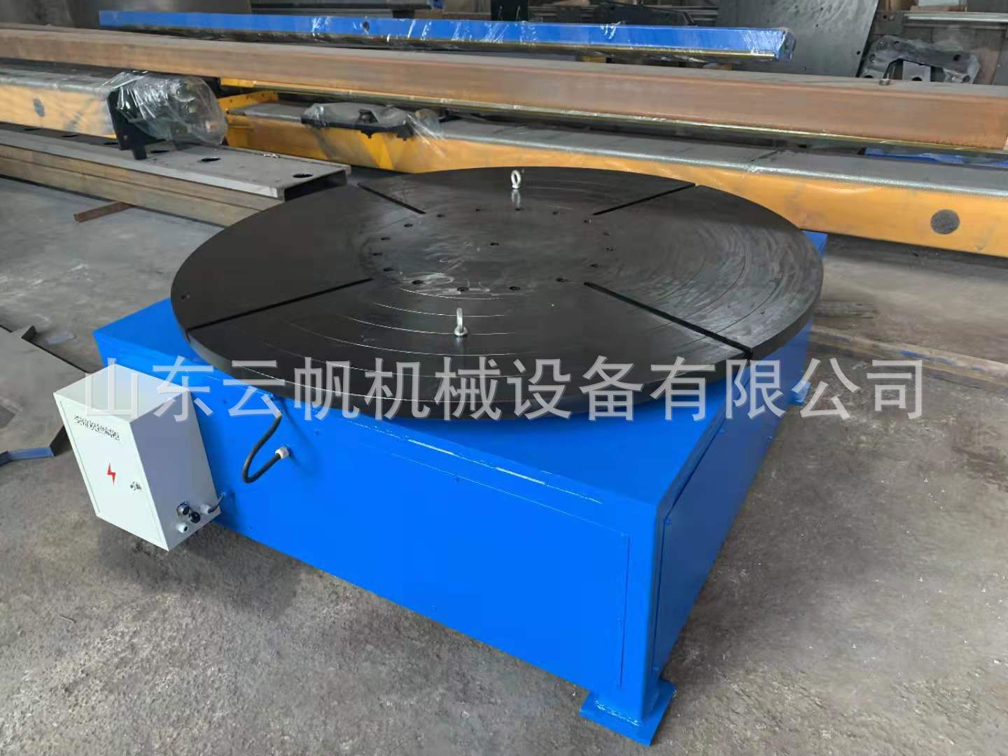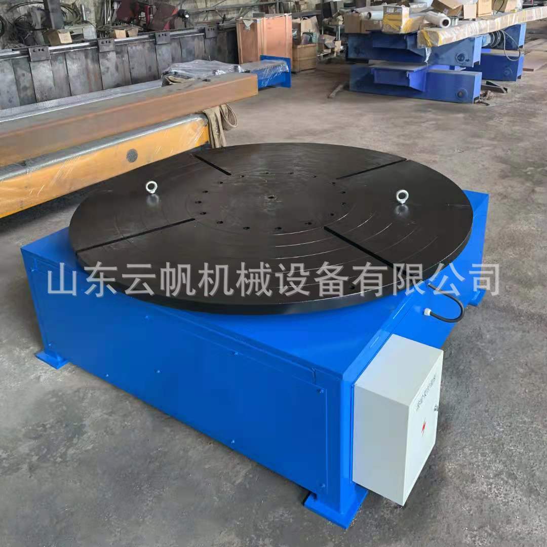 我公司生產的MXT型平面回轉臺,在工作臺上加上定位擋塊及夾緊裝置,使工件在水平方向旋轉時固定不動。工作臺旋轉採用交流變頻調速。變速範圍大,精度高,可按所需焊接速度進行旋轉。從而大大提高焊縫質量,減輕焊工勞動強度,提高勞動生產率。