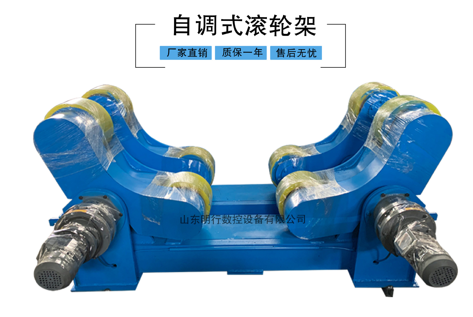 滾輪架主要用於圓柱形工作的旋轉裝置,壓力容器的縱向焊接和圓周焊接,盤狀工作端部和殼體的圓周焊接,管子和法蘭的圓周焊接,大直徑管子的對接焊,也用於箱體、管子、