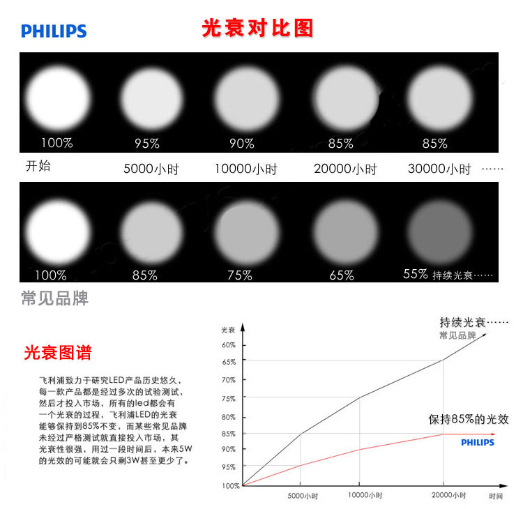 飛利浦LED筒燈採用LED技術,因而與白熾燈泡相比,能源轉換的效率更高,與同瓦數的白熾燈泡相比,發光量更大。因此對消費者而言是一項十分節能的選擇。