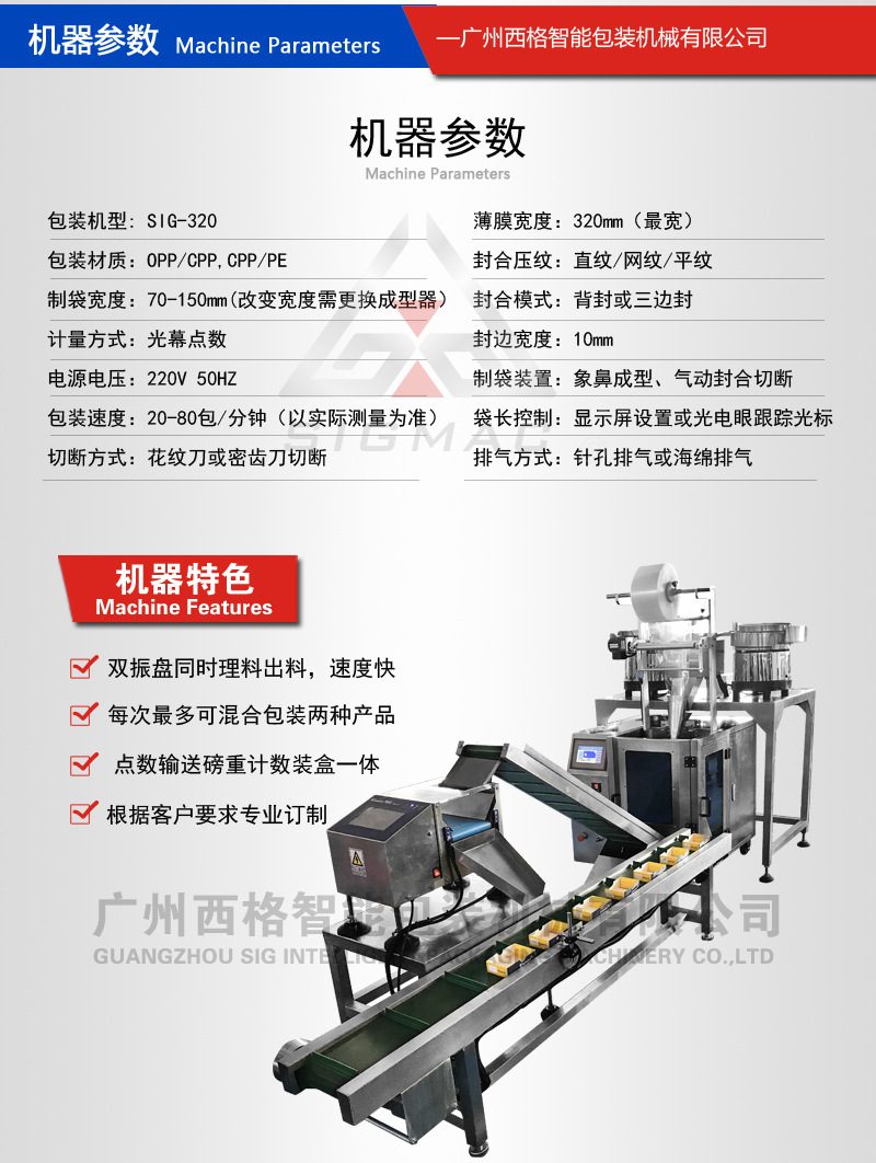 功能:制袋、打碼(選)、計數、填充、封口、包裝等