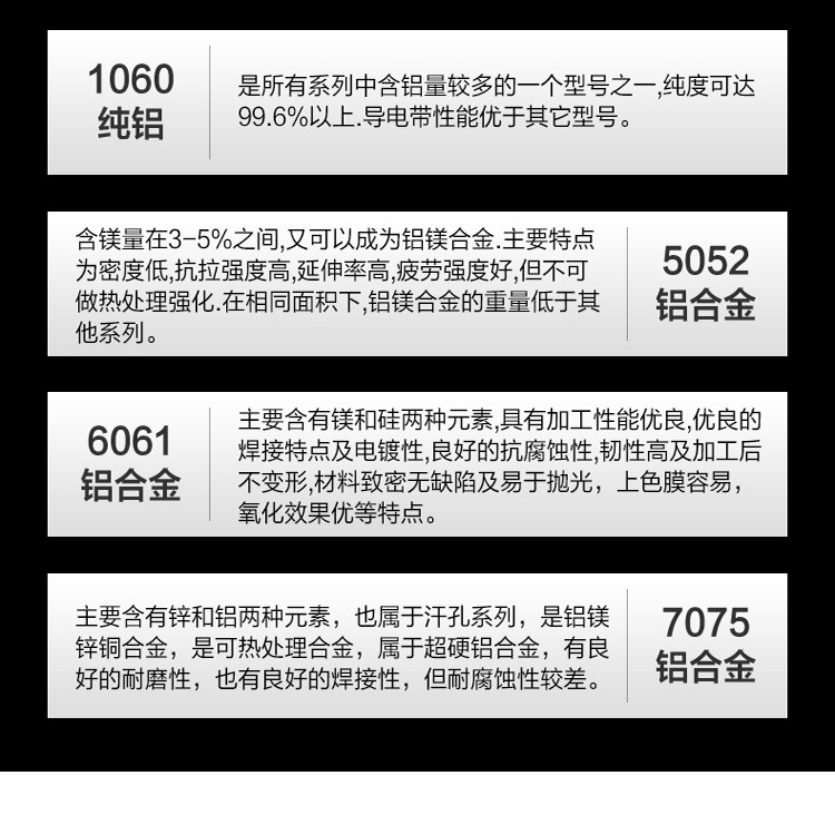 §÷½è¡G1015¡B1060¡B2011¡B2014¡B2017¡B2024¡B3003¡B5005¡B5052¡B5154¡B5056¡B6106¡B6201¡B6011¡B6351¡B6060¡B6063¡B6061¡B6005¡B6082¡B6463¡B6262¡B7003¡B7075¡B7050¡B7005µ¥