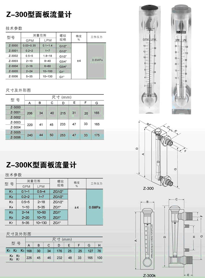也屬轉子(或稱浮子)流量計,其測量錐管是透明有機玻璃。質量輕韌性好、易安裝、免維護、成本低,SCI Z-300管道式有機玻璃轉子流量計也可用於化工、石油、輕工、醫藥、化肥、食品、造紙及科學研究等部門,用來測量液體單相非脈動的流量也可以用於凈水處理及環保工程配套。