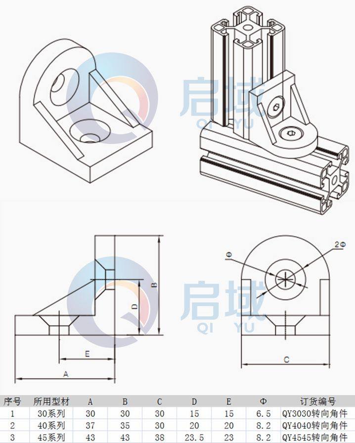 | ³f¸¹¡GQY-4545Âà¦V¨¤¥ó §÷®Æ¡GÀ£Å±¾T À³¥Î»¡©ú¡G ¾A¥Î«¬§÷¡G4545°ê¼Ð¡B¼Ú¼Ð«¬§÷¡C¥Î©ó¥[±j³Q³s±µ«¬§÷ÂIªº¤ä¼µ¤O¡A¤]¥i¥H¥Î°µ»Ý²¾°Ê¦ì¸mªº«¬§÷³s±µ¤è¦¡¡A³s±µ®É¥ÎªºÁ³®ê©MÁ³¥À»Ý¥t°t¡C¼Ú¼Ð«¬§÷³q±`¥ÎM8*20¥¾÷Á³®ê°t45-M8·Æ¶ôÁ³¥À¨Ï¥Î¡C°ê¼Ð«¬§÷¥i°t°ê¼Ð40-14F-M8¥|¤èÁ³¥À©Î·Æ¶ôÁ³¥À»PM8*20¥¾÷Á³®ê°t¦X¨Ï¥Î¡C |