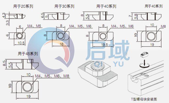 | ³f¸¹¡GQY¼Ú¼Ð45-T«¬Á³¥À¡]¼Ú¼Ð«¬§÷¨Ï¥Î¡^¡A§÷®Æ¡GºÒ¿û(ªí±ÁáÂì)¡C ³W®æ¤À¬°¡G 45-10-M4T«¬Á³¥À¡C 45-10-M5T«¬Á³¥À¡C 45-10-M6T«¬Á³¥À¡C 45-10-M8T«¬Á³¥À¡C À³¥Î»¡©ú¡G¼Ú¼ÐT«¬Á³¥À¬O¼Ú¼Ð«¬§÷¡]T«¬¼Ñ¡^ªººò©T¥ó¡C±NÁ³¥ÀÀY¶¶«¬§÷¼Ñ¤è¦V©ñ¤J¼Ñ¤º¡A¶¶®É°w±ÛÂà90«×¡A¦w¸Ë¹Lµ{¤¤¥¦¯à¦Û°Ê©w¦ìÂêºò¡A ±`»P¤º¤»¨¤Á³®ê°t¦X¨Ï¥Î²Õ¸Ë¨¤¥ó¡C 45«Y¦C¨Ï¥Î©ó¼Ú¼Ð4545¡B4590¡B5050¡B50100µ¥¼Ñ¼e10mmªº«¬§÷¡C |
