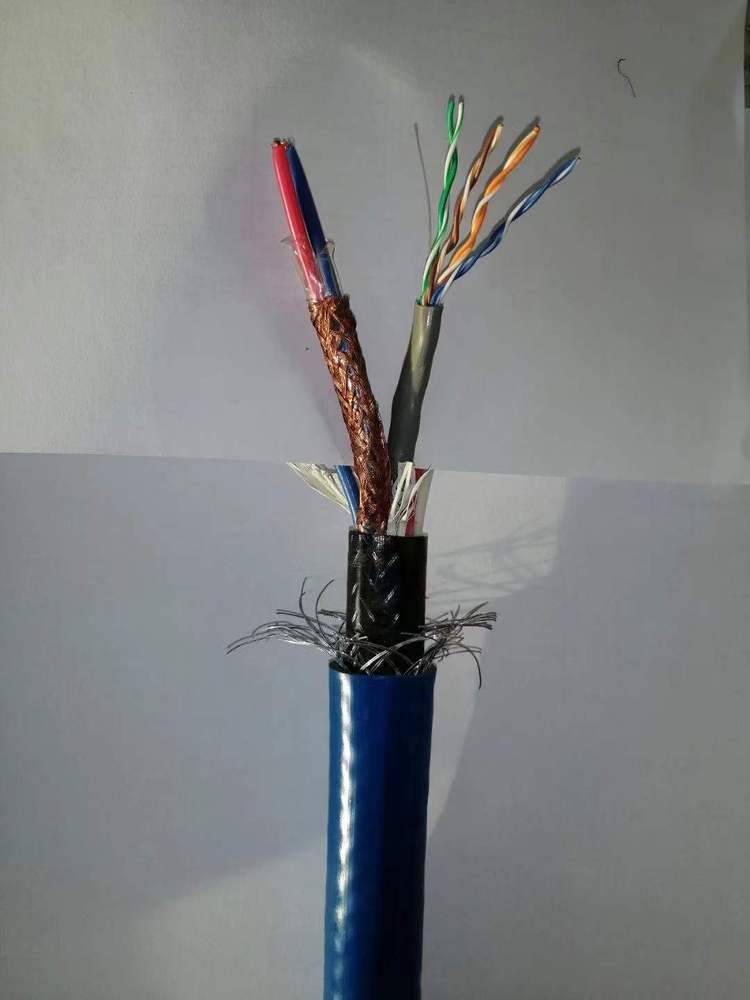 1電源線;2信號線;3軟銅編織;4聚酯薄膜;5聚內襯層;6鍍鋅鋼絲編織鎧裝層;7聚總護套;8填充繩;9聚護套;10聚酯/鋁復合膜。